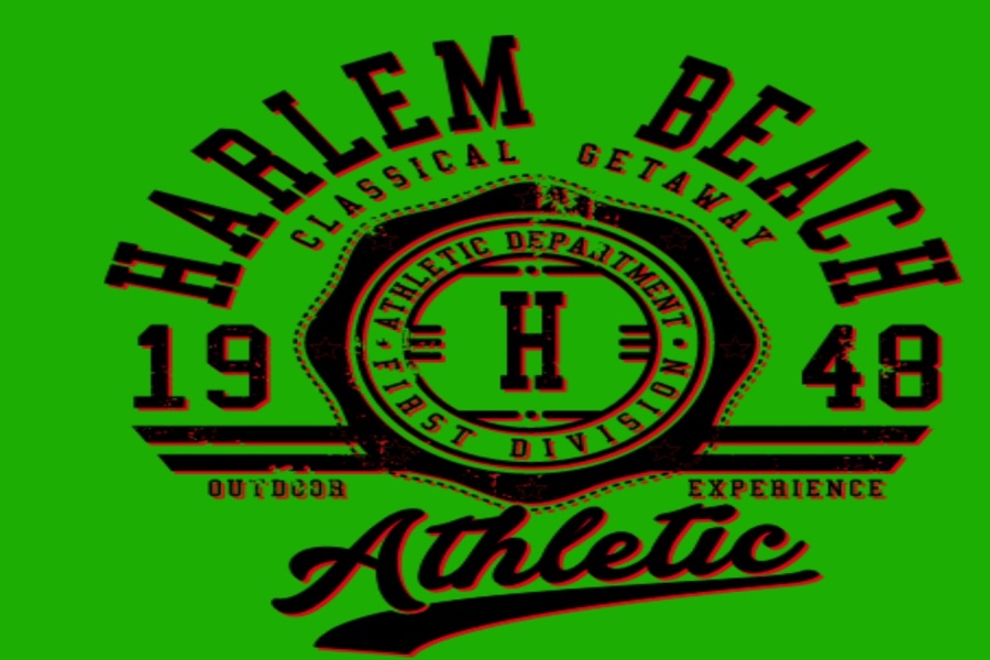 HARLEM BEACH GREEN BACKGROUND ON A RED T_SHIRT